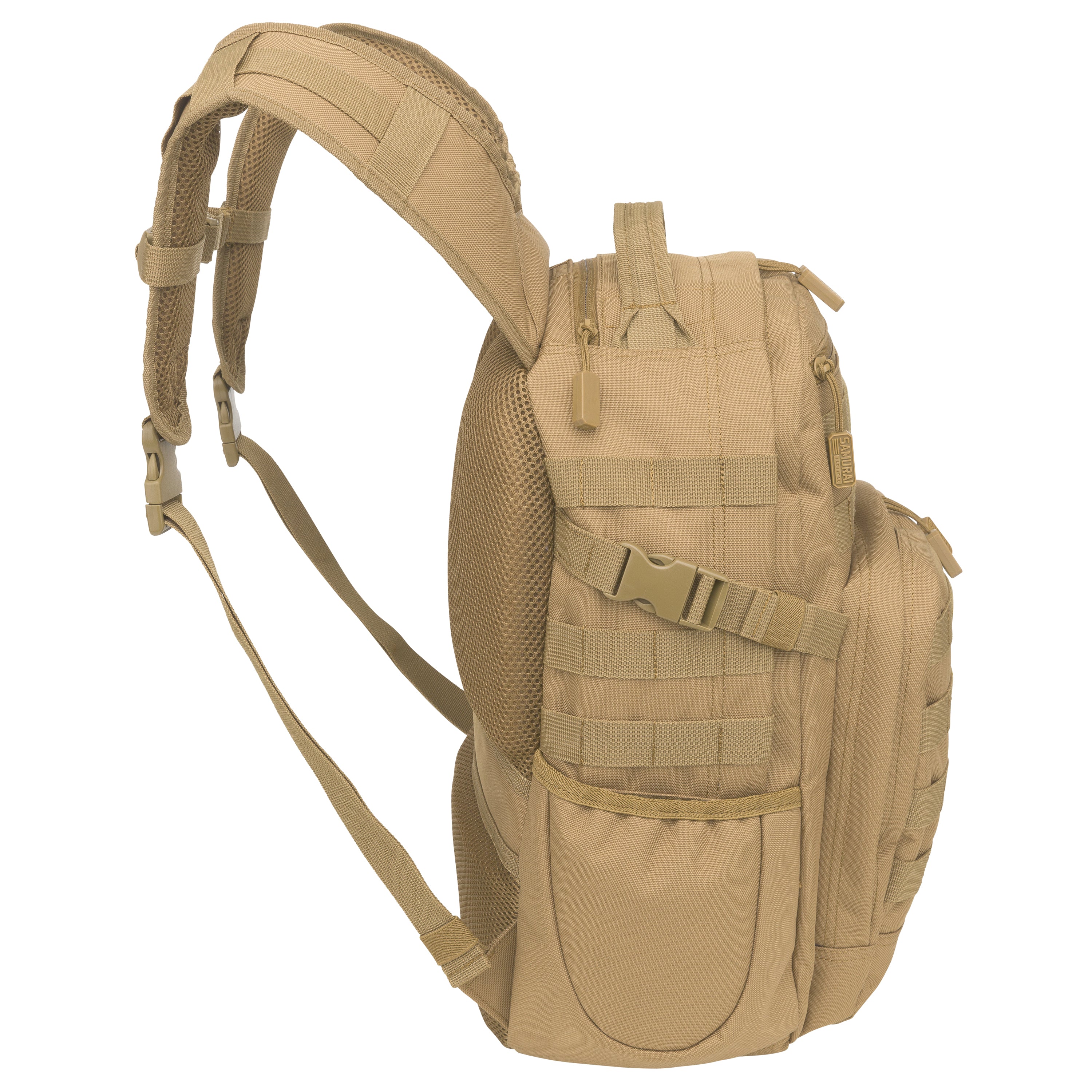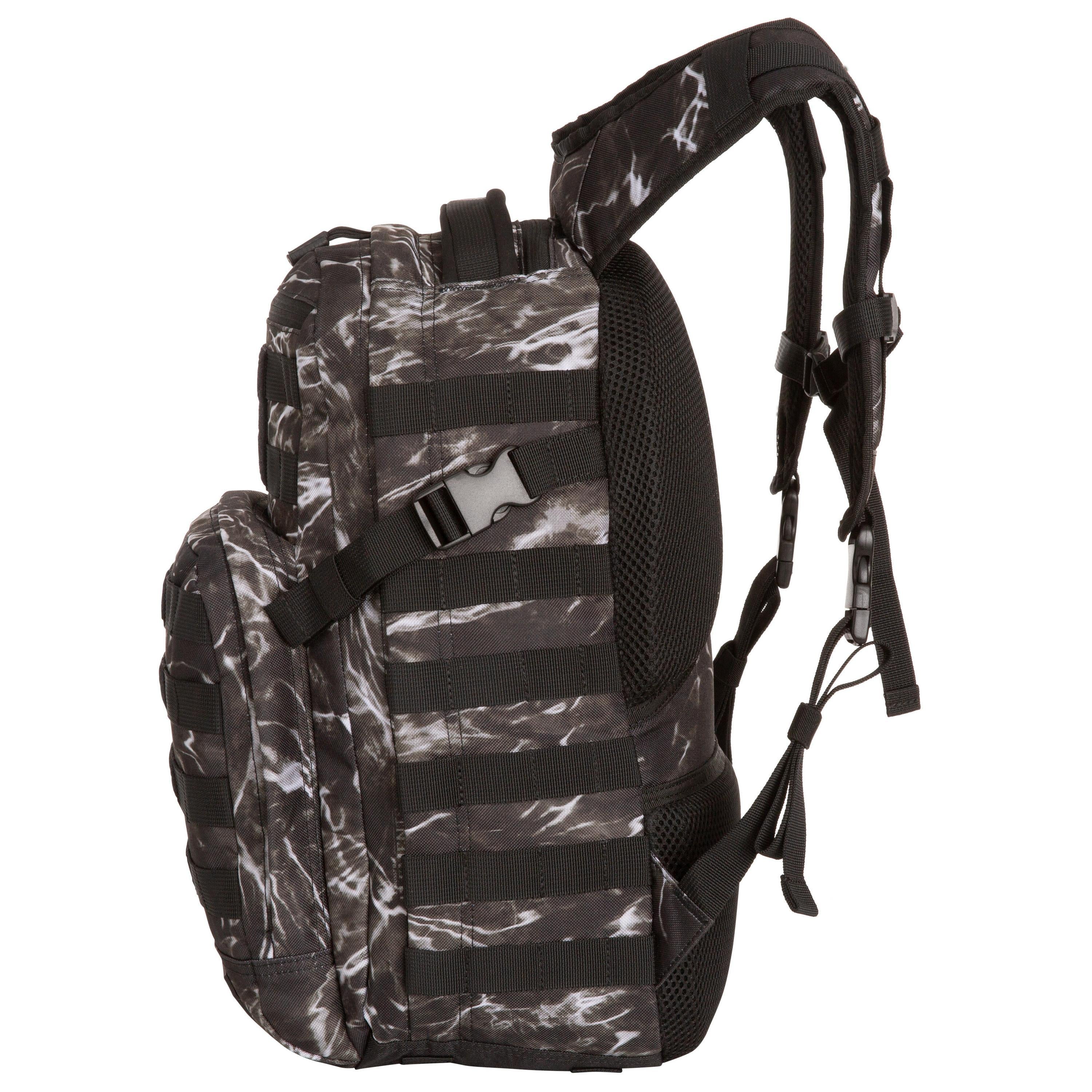 - LARGE STORAGE CAPACITY: Large main pocket with additional mesh zipper pockets and a protective sleeve for either a laptop or hydration bladder. Side compression straps to customize the fit and a side water bottle pocket. Two top pockets, one of which is soft lined for sunglasses or electronics. This tactical day pack backpack has a 24-liter storage capacity and measures 17.1 x 11.1 x 6.1 inches (H x W x D)